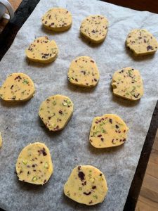 Orange, pistachio and cranberry biscuits